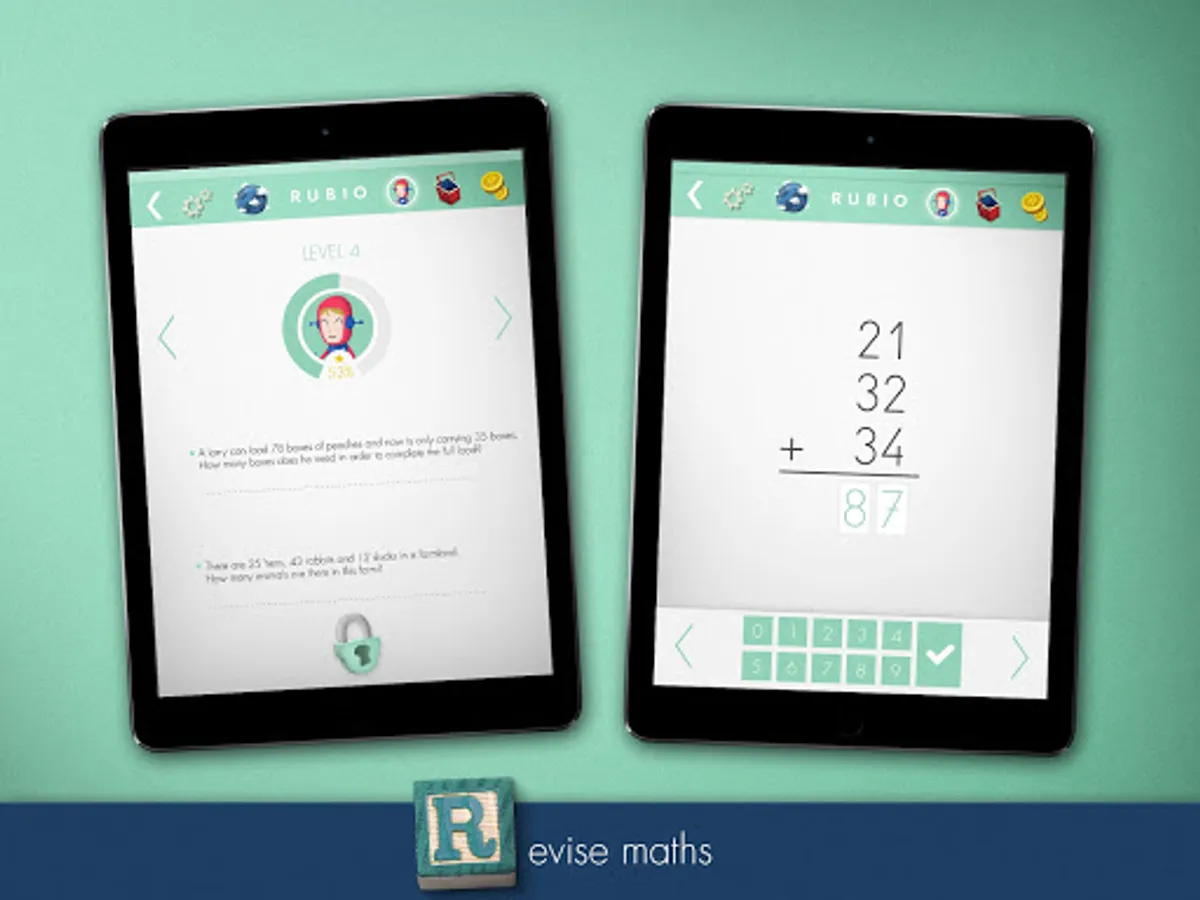 Help your kids to improve their learning; they will practice addition, subtraction, multiplication and division in a fun way. In each workbook they will be able to solve more than 20 levels and unblock secret activities.