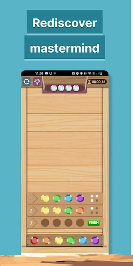The challenge mode is dedicated to users who like to accomplish feats. At each of the 200 levels in this mode, rules for completing the challenge are differently setted and you must accomplish them to move on to the next stage. These can be speed challenges where you have to succeed in finding a combination faster than the allotted time, or for example thinking challenges to rack your brains even more. In this mode you will find new ways to play Mastermind original.
