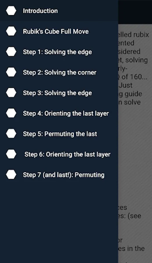 In our mobile app we show you how to solve 3 × 3 × 3 Rubix Cube Step by Step. To solve the Rubik's cube requires memorization and thinking. When you first learn, memorization is more important when you start to learn the power of thinking comes to the fore. Having learned how to solve the Rubik's cube, it requires quick thinking and decision-making.