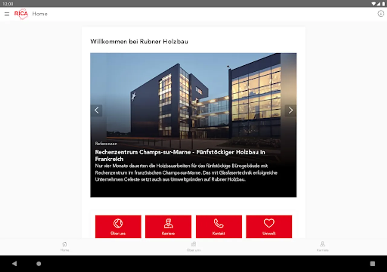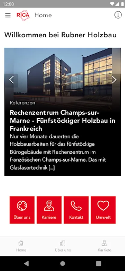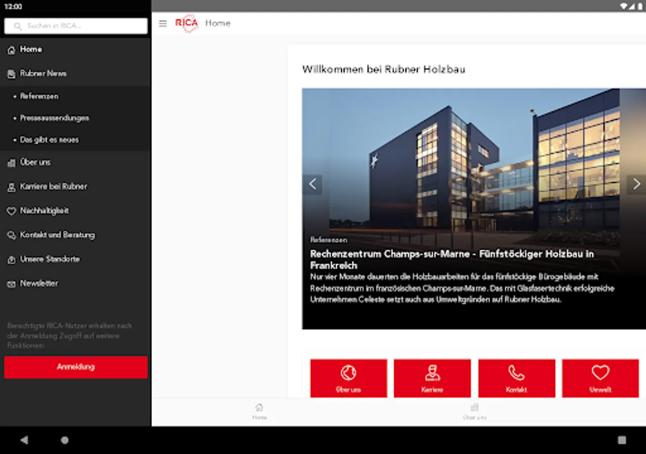 RICA, the Rubner Information & Communication App, is a Rubner Holzbau communication app that was primarily developed for employees, but also offers partners, suppliers, customers and interested parties up-to-date information about the company.