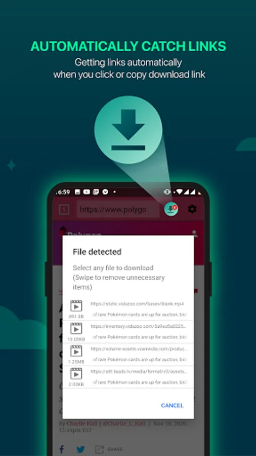 - Auto-catch download links whenever you copy to clipboard or open a downloadable link.