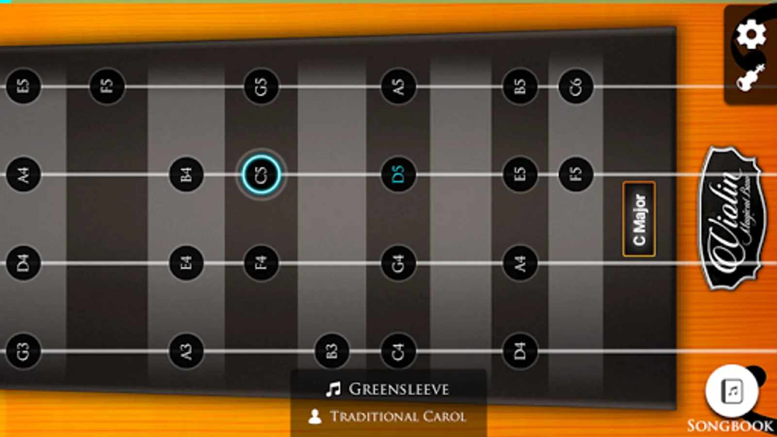 + Play With Notes: press notes on Fingerboard. You can select Violin Scales for free play or select a song and follow the prompt notes. In this mode, record feature enables you to record your own songs.