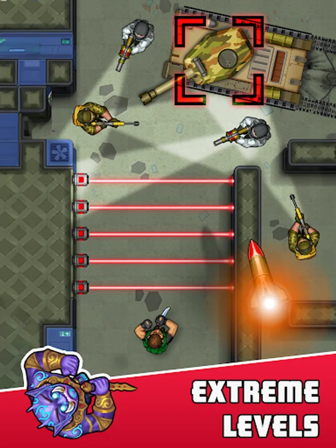 Whether it's running and hiding you have to play your cards right. Activate laser traps to lure enemies into your trap, then strike with precision and take them all down. With freeze mines and rockets flying towards you, you will need to be quick and cunning to succeed.