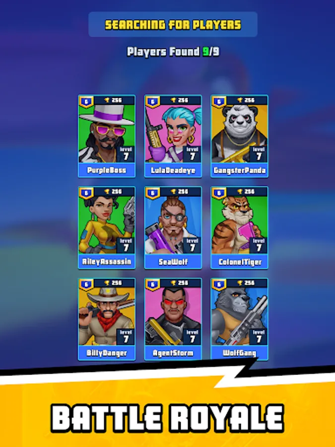Choose your hero and get ready for a brutal battle.Get to know your character’s special powers, weaknesses and decide your strategy to beat them all. Collect hero cards and unlock new characters. Each hero comes with a signature attack move, choose one and dive right into the multiplayer battle royale.