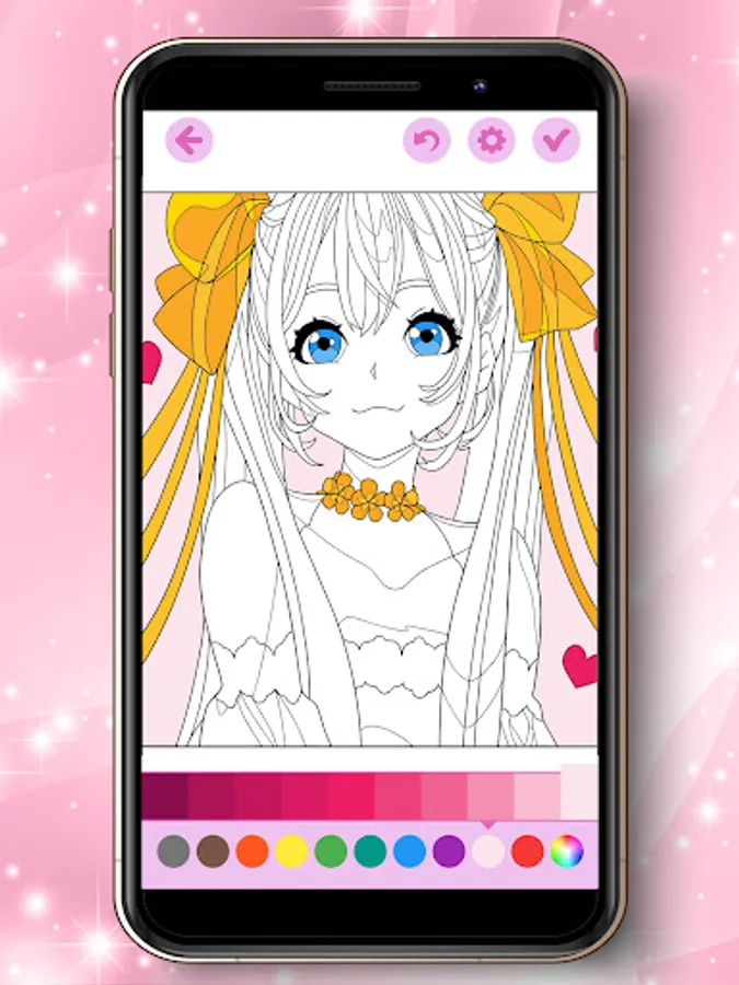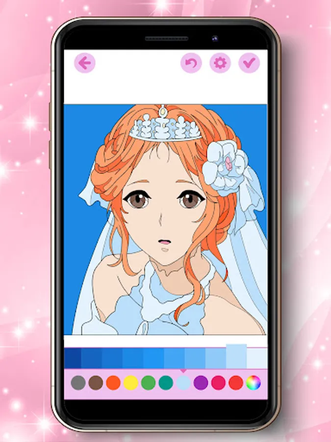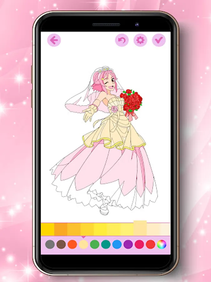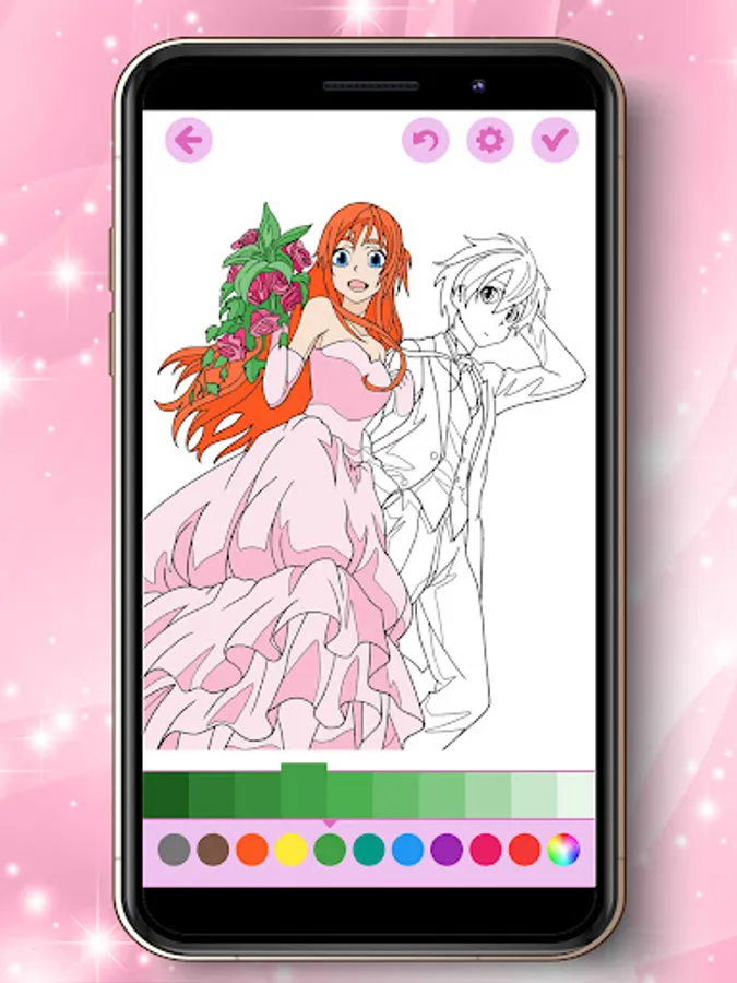 In our coloring book you can give free rein to your imagination! Paint the anime bride in any colors you want! You can always repaint the area or create your own color!