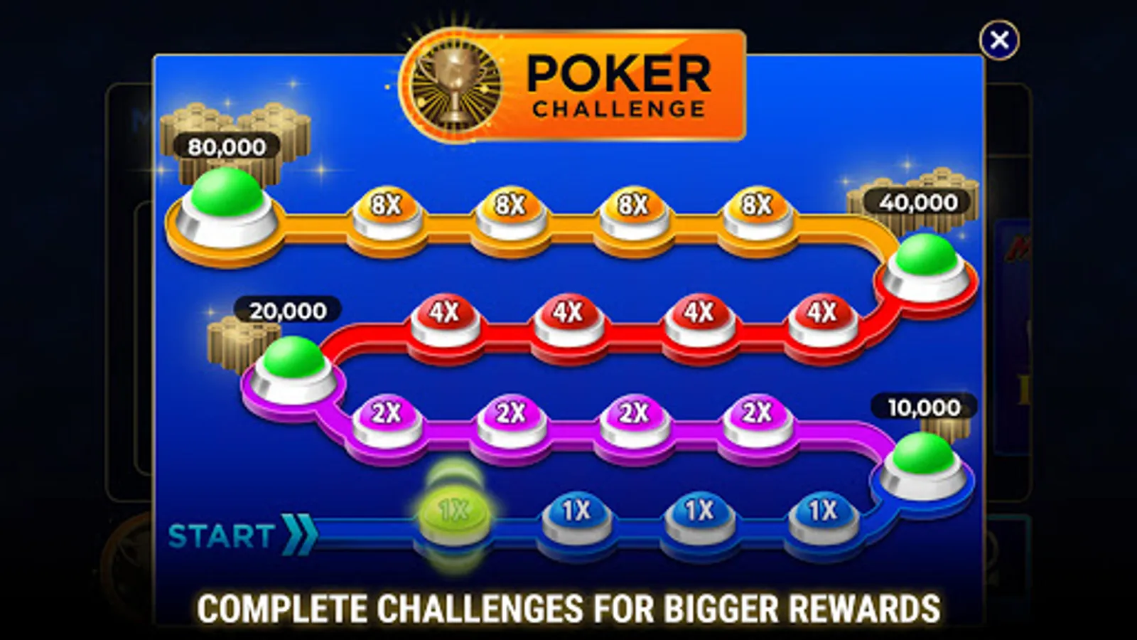 Take on exciting poker challenges and show off your poker prowess against friends and rivals on the weekly leaderboard! Earn credits making your way through challenge maps, earn huge credit bonuses and pick up daily and bi-hourly bonuses – just for playing!