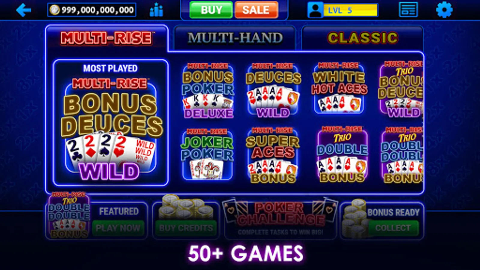 • Multiple variations of our world-famous Multi-Rise Poker™, including Multi-Rise Jacks or Better, Poker Trio Double Double Bonus, Poker Trio Bonus Deuces Wild and Joker Poker.