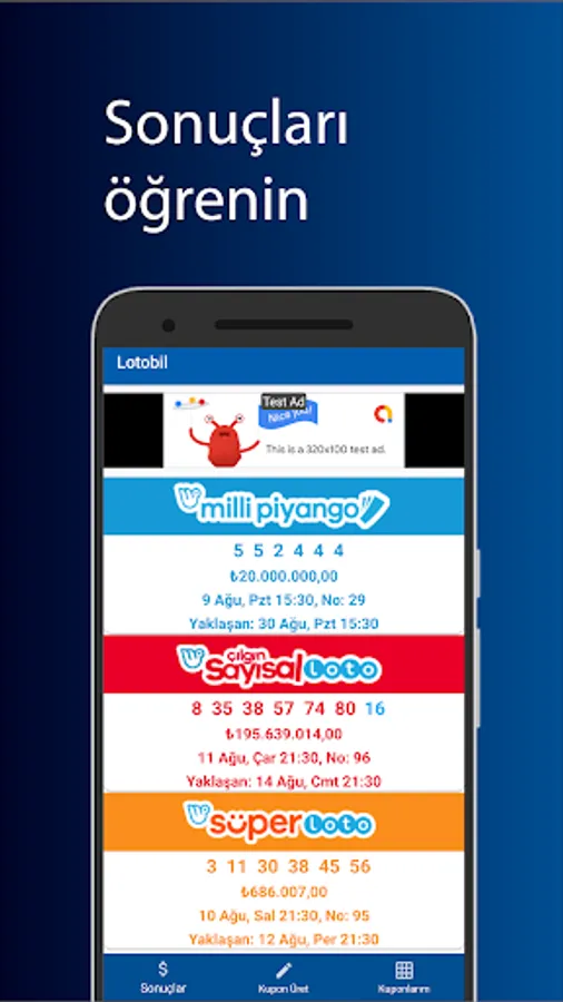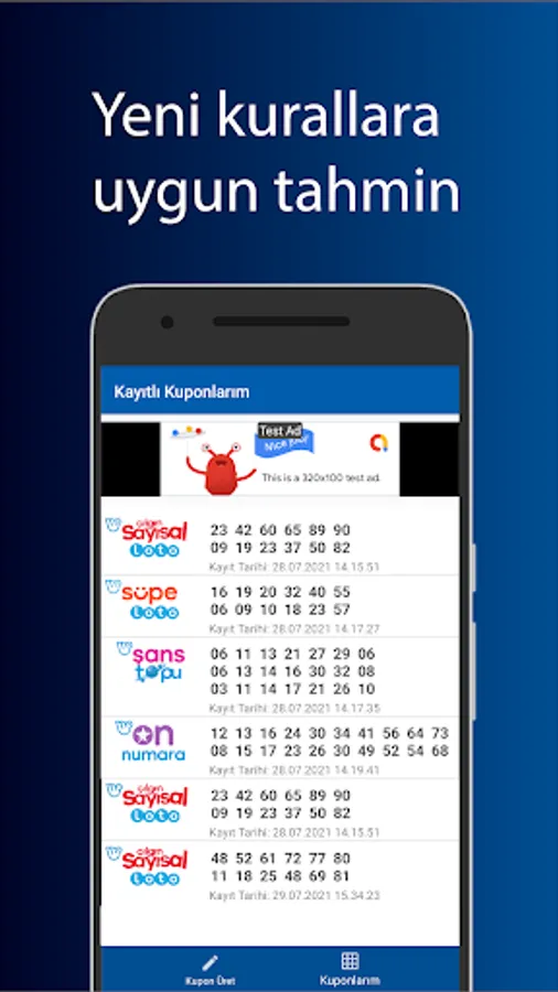 If you wish, you can save the coupons you have produced to play later. You can also access the results of the national lottery, crazy numerical lotto, super lotto, chance ball, number ten games from within the application.