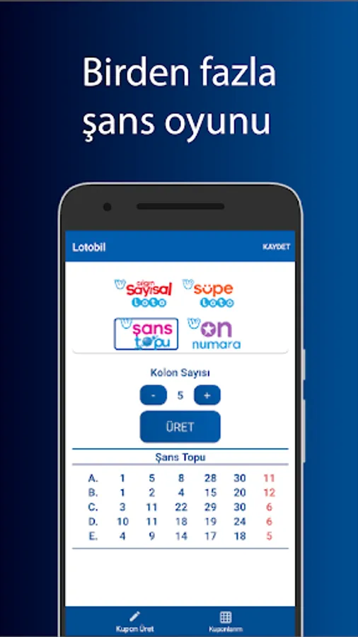 LotoBil creates coupons with the number of columns you specify and you can create as many coupons as you want.