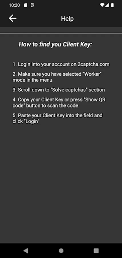 1. Sign in to your account on 2captcha.com (in order to scan the QR code you should sign in from a PC or from another mobile device)