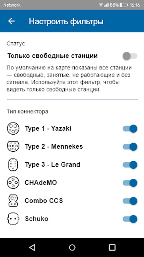 - Find out where the nearest free EZS is located, suitable for your electric car, and lay a route to it;