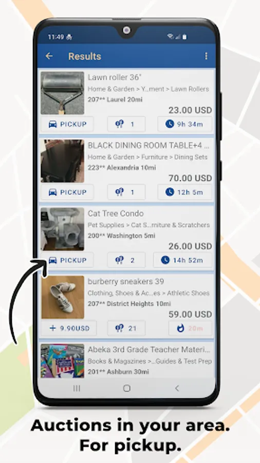 Select your country, enter your ZIP code and search for auctions in your region offered for pickup.