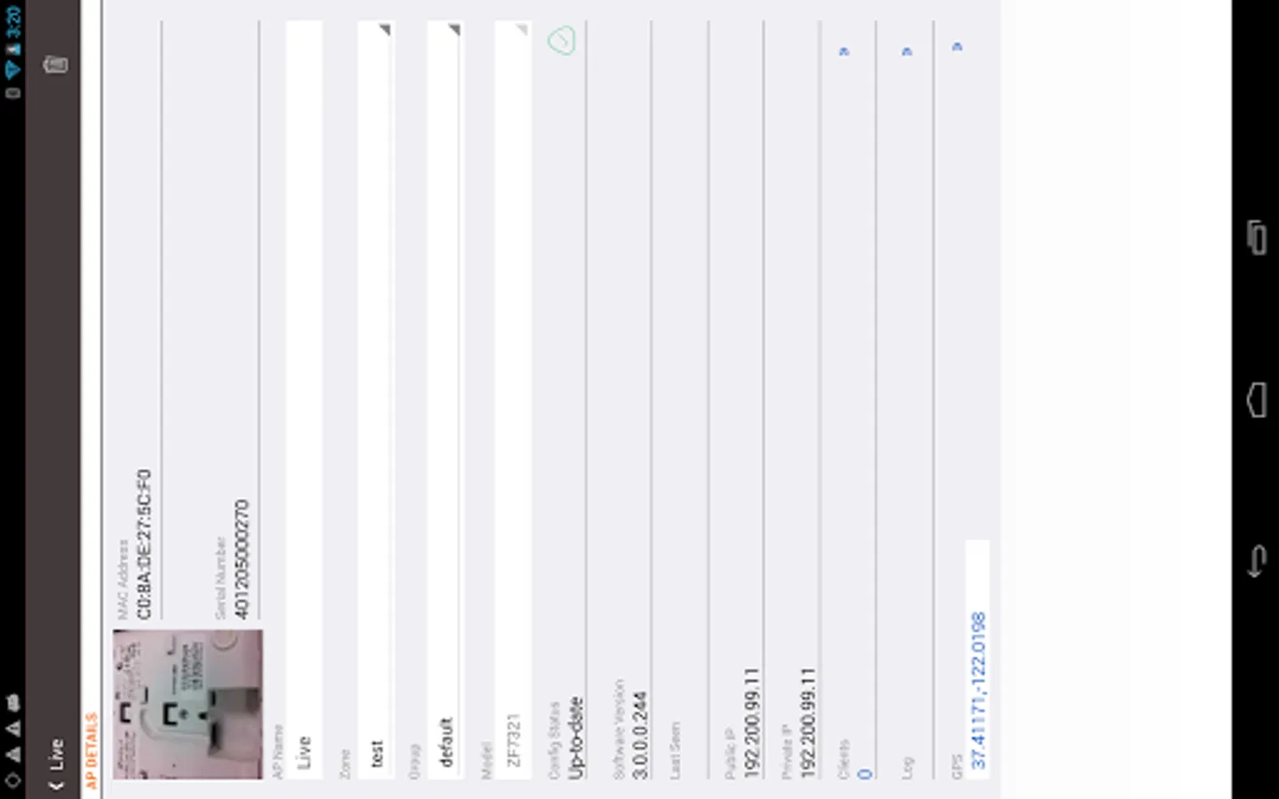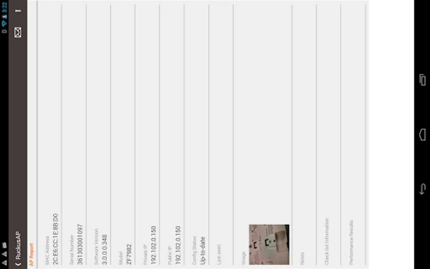 SWIPE also helps eliminate the inefficient and error prone process of manually updating backend systems with AP serial number, MAC addresses, location, IP address, etc. using a notepad, email or phone. SWIPE users can simply email information such as serial numbers, MAC addresses, AP model numbers, firmware version, location (Latitude/Longitude), as-built pictures, etc.