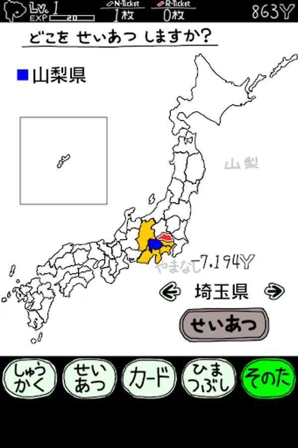 都道府県を制圧すると、ミニゲームが遊べるようになります。