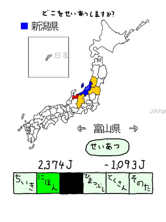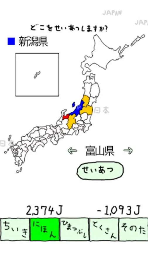 ・J(JAPAN)を使うことによって、各都道府県を制圧できます。