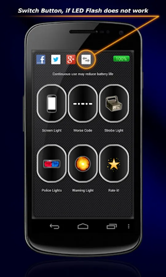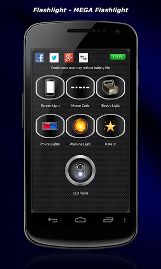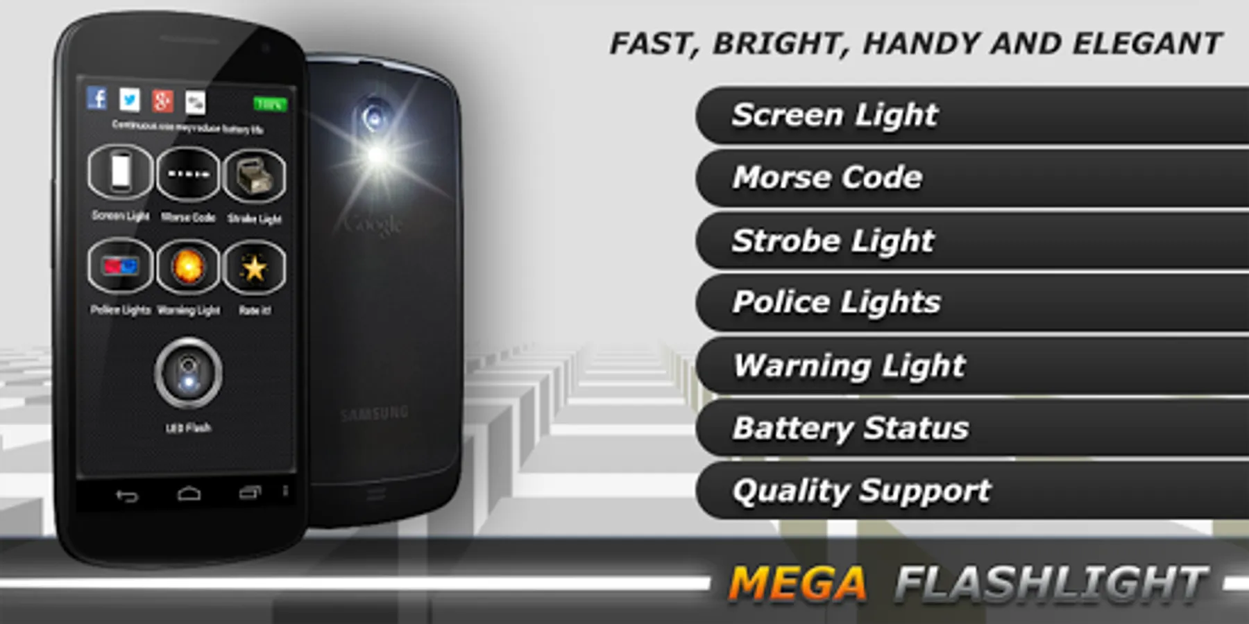 Flashlight app for your mobile android smart phone or tablet to turn fast and simple the camera into a very bright LED flashlight.