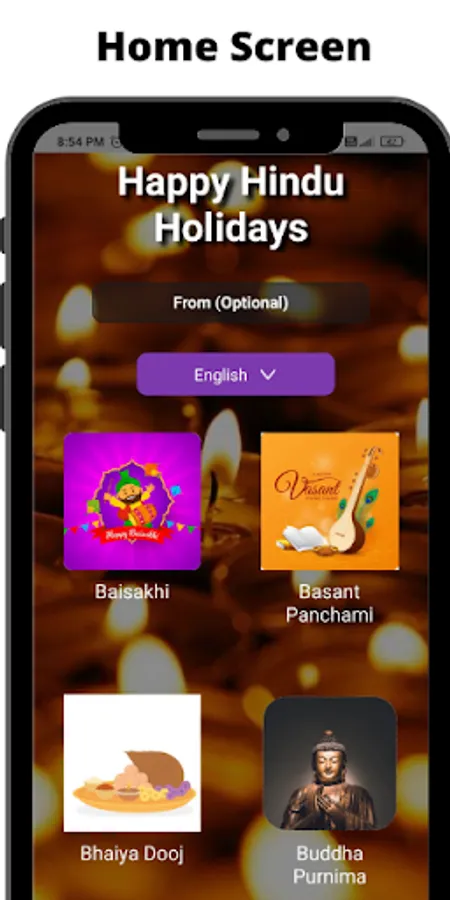 Hindu Festival Wishes includes all the festivals celebrated by Hindus and other communities all over the world. The app includes: