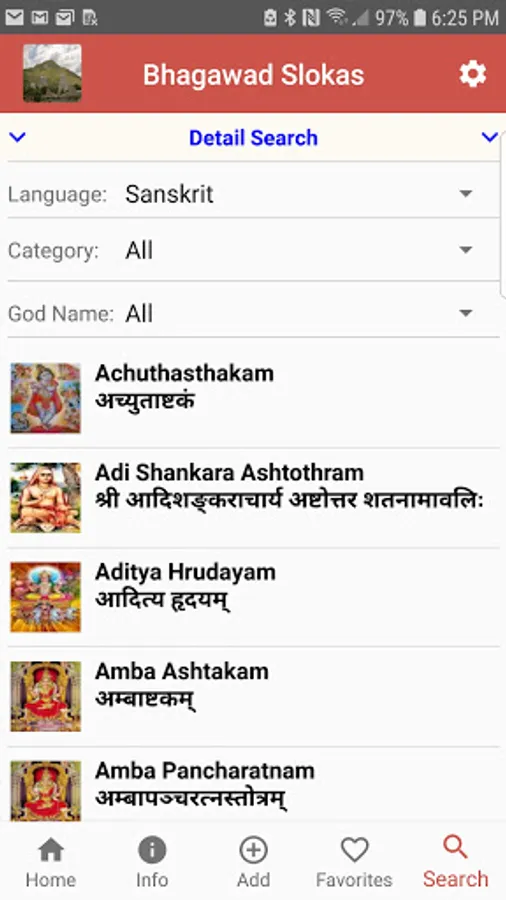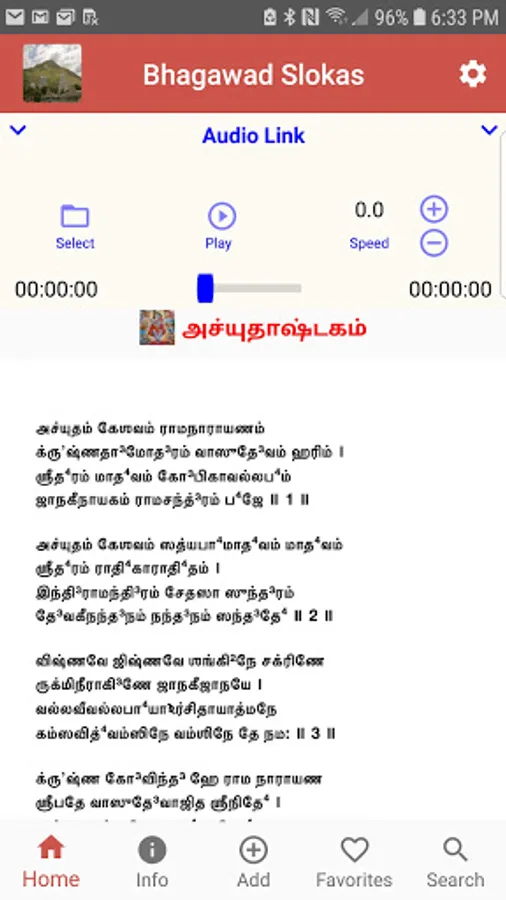 Bhagawad Slokas app provides lyrics to various Slokas, Sahasranamavalies, Ashtothrams and Pujas in Sanskrit, Tamil and English of various Hindu Gods and Goddess such as Ganesha, Shiva, Durga, Lalitha, Muruga, Vishnu, Krishna, Rama, Lakshmi, Hanuman, Saraswati and Ayyapa.