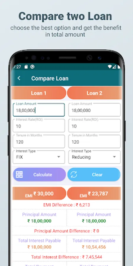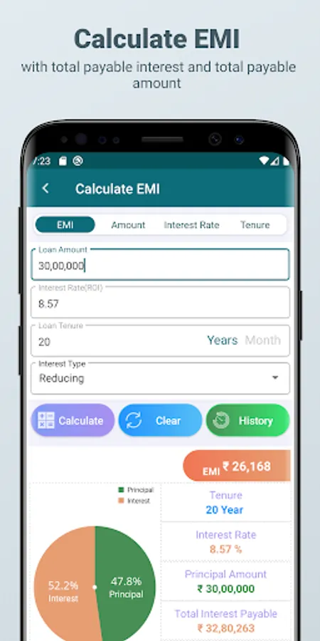 emi calculator for personal loan, bike loan, bank, car loan, simple interest, reducing and flat interest rate,