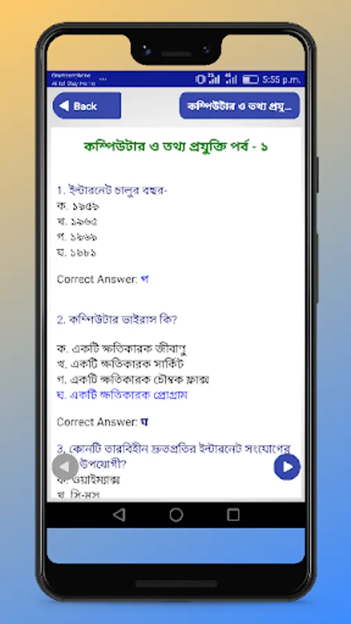 আমাদের এই hsc ict mcq অ্যাপটি আপনারা কম্পিউটার শিক্ষা বই তথ্য ও যোগাযোগ প্রযুক্তি বই থেকে গুরুত্ত্বপূর্ণ অধ্যায়গুলো নিয়ে কম্পিউটার শিক্ষা বাংলা বা বাংলায় কম্পিউটার শিক্ষা কুইজ অ্যাপটি সম্পাদন করেছি, যাখানে থাকছে বেসিক কম্পিউটার শিক্ষা নিয়ে অনেকগুলি কুইজ রয়েছে। বিভিন্ন নিয়োগ পরীক্ষাতে আসা ict mcq প্রশ্ন ও উত্তর সমূহ পাবেন এই অ্যাপটি থেকে।তাছাড়া কিছু অতি গুরুত্বপূর্ণ প্রশ্ন আছে যা অনেক বিশ্ববিদ্যালয় ভর্তি ও চাকরি পরীক্ষায় আসে।