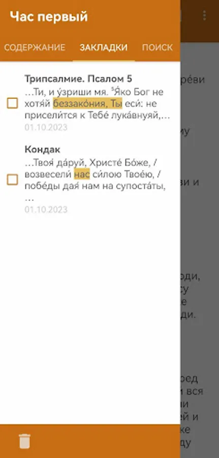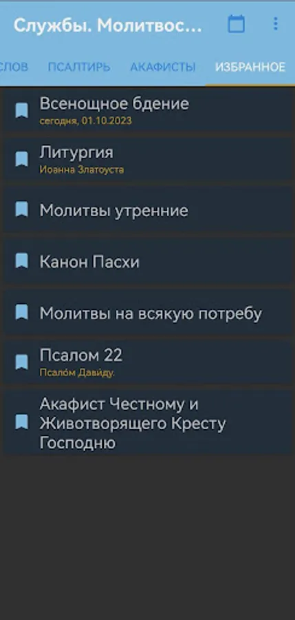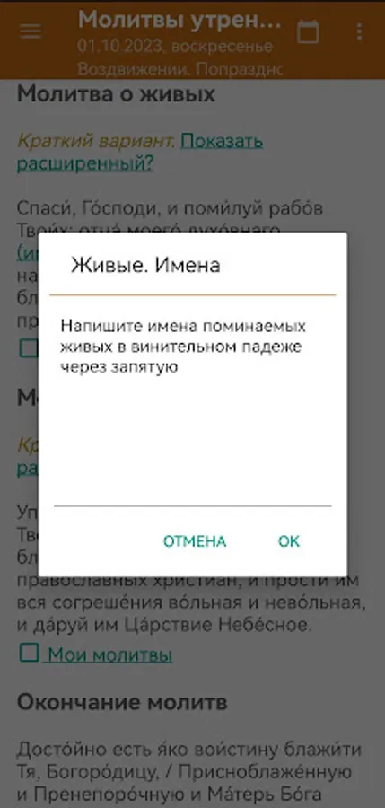 - the ability to make your own list of prayers "My prayers" in the sections "Morning prayers", "Prayers for the future sleep" and "Prayers for every need"