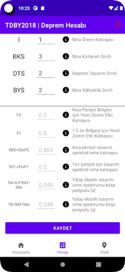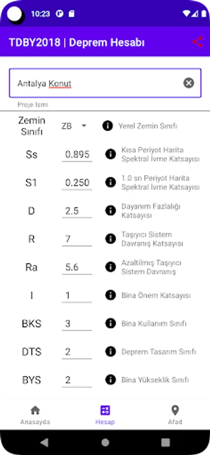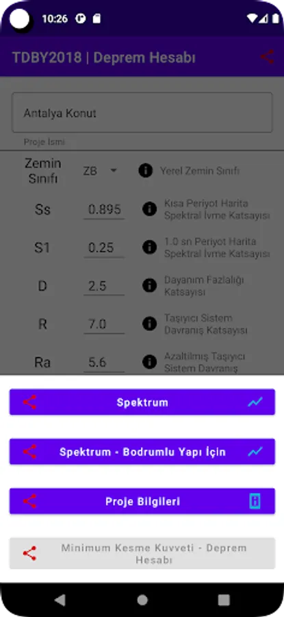 It allows you to calculate and save various parameters required for structural analysis and the spectrum values of the hull and all structure according to the Turkish Earthquake Code.