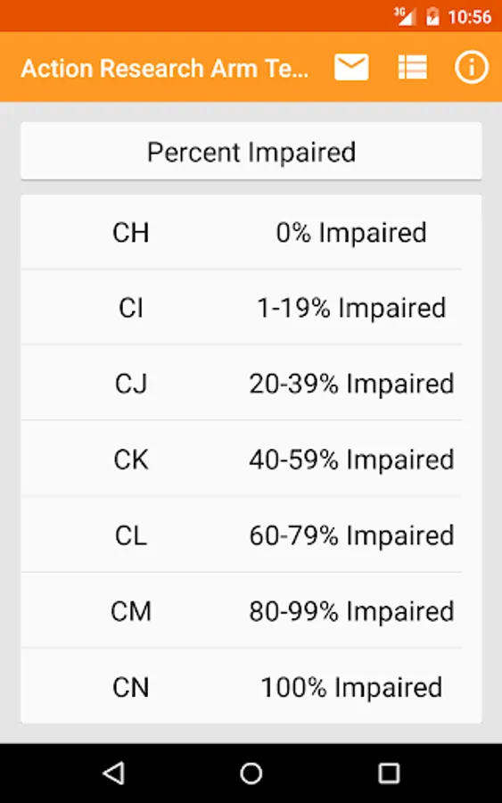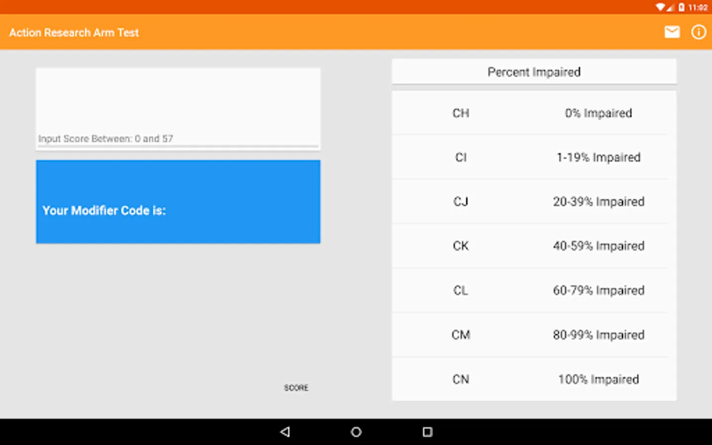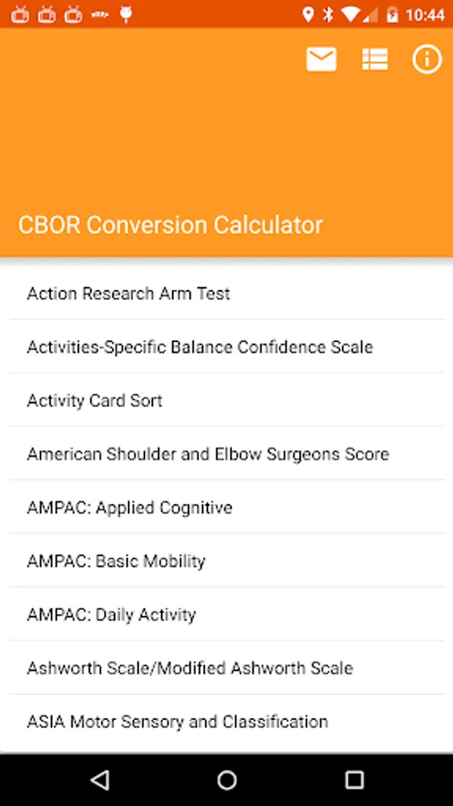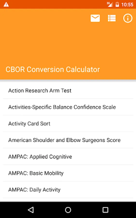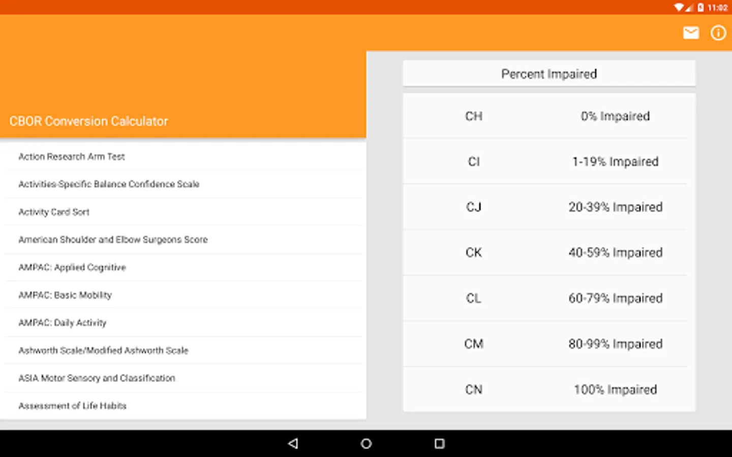 This is a native Android version of the Claims Based Outcomes Reporting Conversion Calculator. This is much like the official app, but ***doesn't*** require a data connection. This is a fast speedy app for all android devices. This is the first version and I wrote it in a day, I will update to add more features soon, but this has all 95 functional assessments from the MediServe Website. If you find any mistakes, please let me know and I'll correct them immediately.