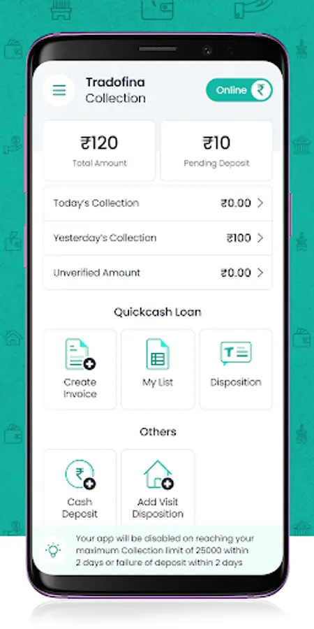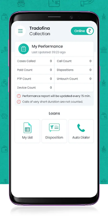 This is an Employee CRM App for Tradofina Collections Team. The App enables the users to mark attendance, view cases assigned to them, mark disposition and track their performance against the assigned cases. It also gives flexibility to call the customers using App.