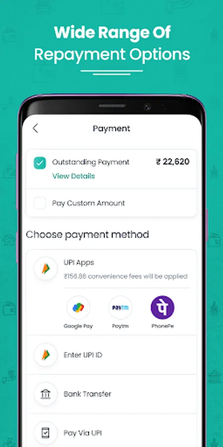 ✔ Easy & Convenient repayment options (UPI, Debit Card, Net Banking, Bank Transfer, etc.)