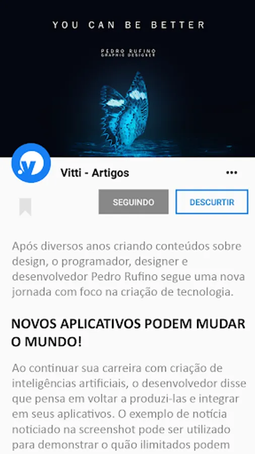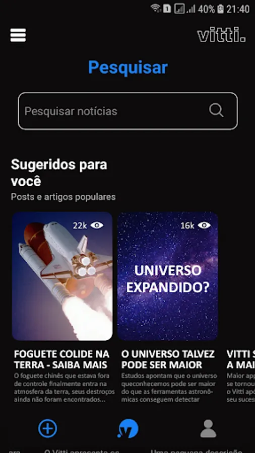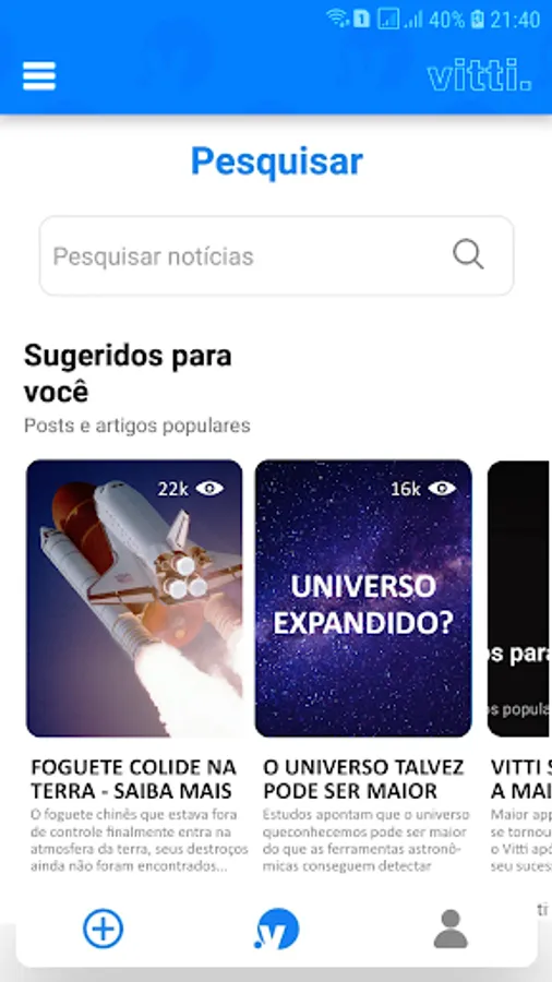 Vitti is an application for publishing and reading articles, you can count on several publishing tools, text formatting and much more. In addition, you can host your blogs or posts from your websites in our app to notify users every time they publish something new.