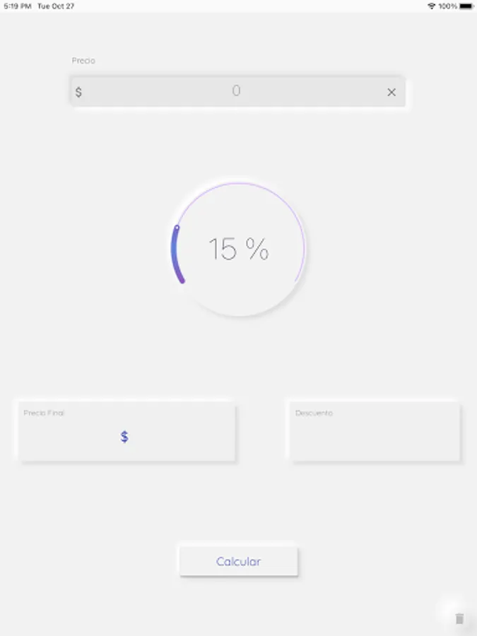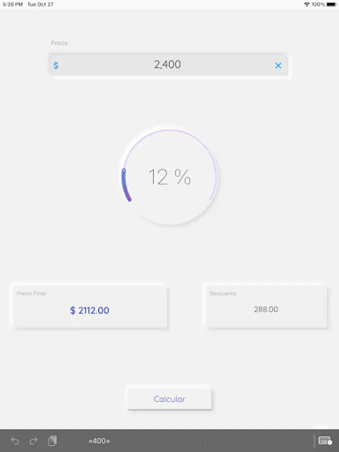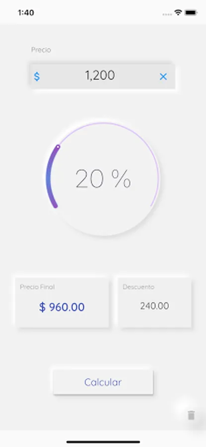 This application allows you to calculate the cost of a product offered with a percentage as well as the savings and