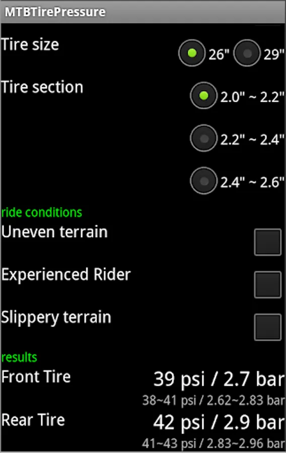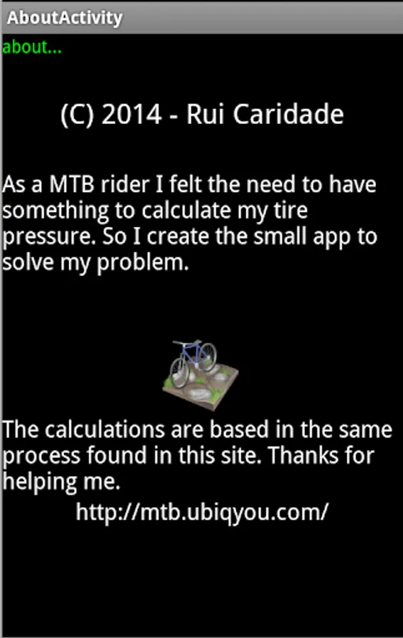 Visiting the site “MTB Tech” I saw a very good way to calculate the pressure for my MTB bike, so talking with it’s creator I replicated to Android.