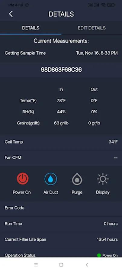 ● The Current Display Temperature, Humidity, and GPP at both Inlet and Outlet
