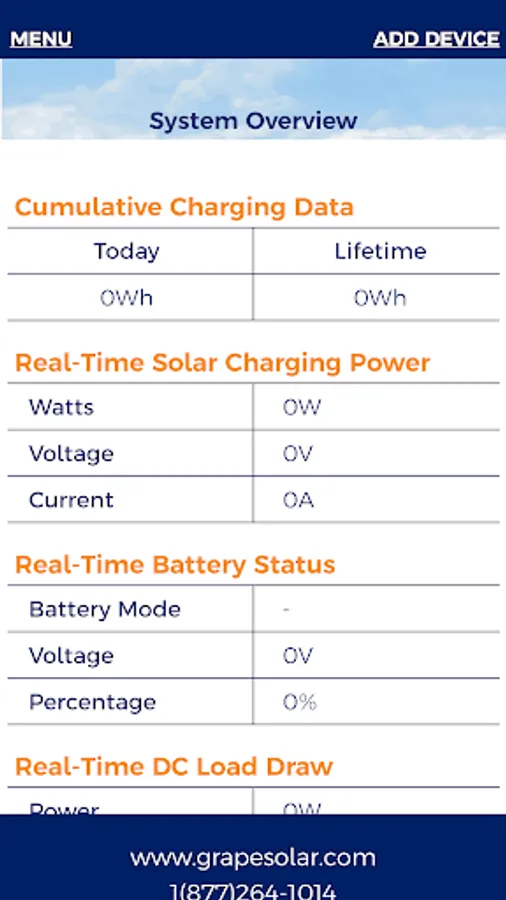 GrapeSolar APP is used as a remote display and operation panel for the relevant solar charge controller (an external or inbuilt BT module is required for usage). By operation on this APP, you can check the status of PV, battery, DC load for the solar DC charge system with charge controller.