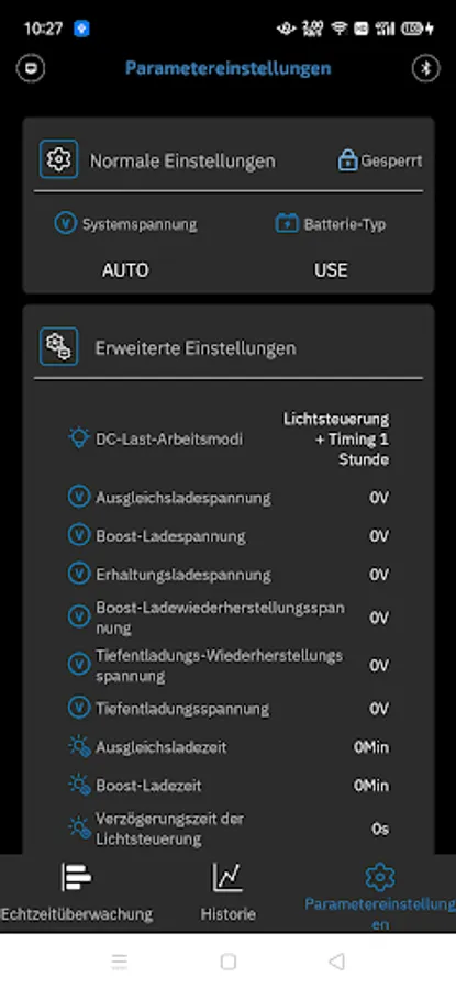 Alle Parameter die du am Laderegler selbst einstellen kannst, lassen sich ebenfalls