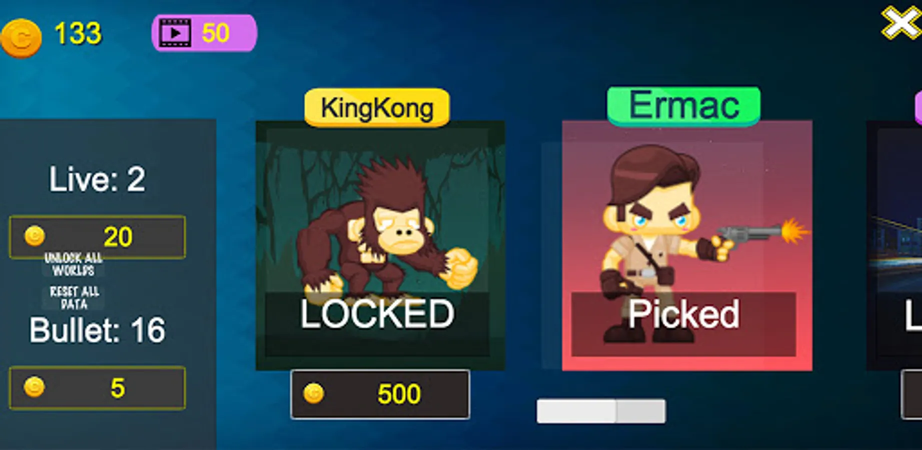 - Coin: Use coins to purchase more lives or bullets