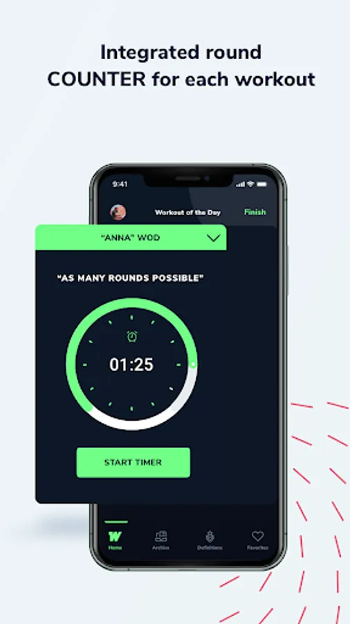 Just do your workout while the timer counts up. You can end your counter WOD anytime by clicking the finish button on top right, and share your time with friends.
