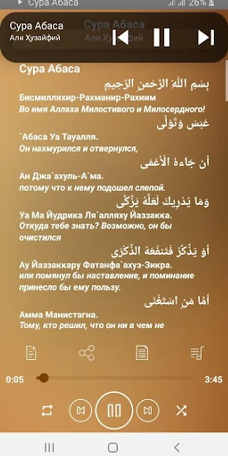 Abasa (Arabic: عبس - Frowned) - the eightieth sura of the Quran. Meccan Sura. Sent between Suras al-Najm and al-Qadr. Consists of 42 verses.