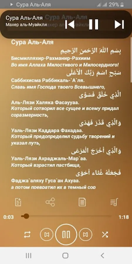 Al-A’lya (Arabic: الأعلى - Supreme) is the eighty-seventh sura of the Qur'an. Meccan Sura. Consists of 19 verses.