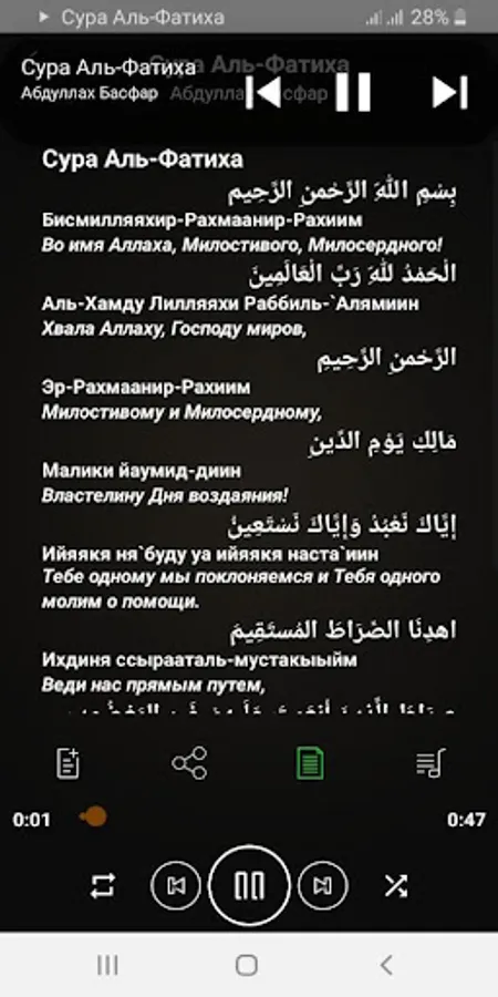 Al-Fatiha (Arabic: الفاتحة - Opening) is the first sura of the Quran. Meccan Sura. Consists of 7 verses.