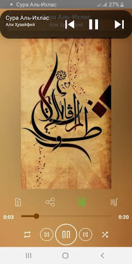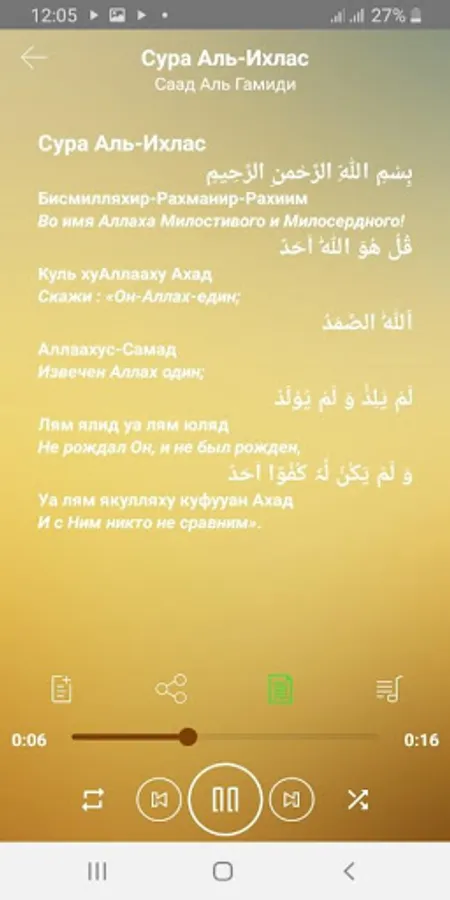 Al-Ihlas (Arabic: الإخلاص - Purification of Faith) is the one-hundred-and-twelfth sura of the Qur'an. Meccan Sura. Consists of 4 verses.