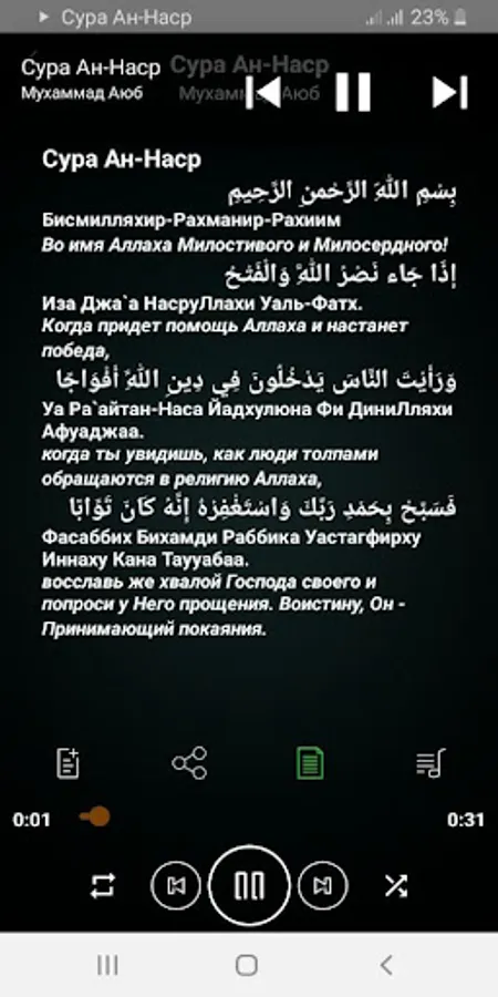 al-Nasr (Arabic: النصر - Help) - one hundred and tenth Surah of the Quran. Sura Medina. Last sent to the surah at-Tawba. Consists of 3 verses.