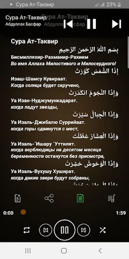 At-Takvir (Arabic: التكوير - Twisting) is the eighty-first sura of the Quran. Meccan Sura. Consists of 29 verses.