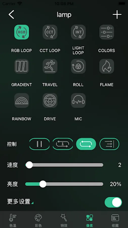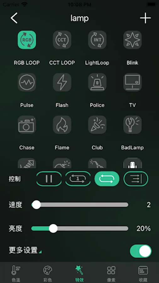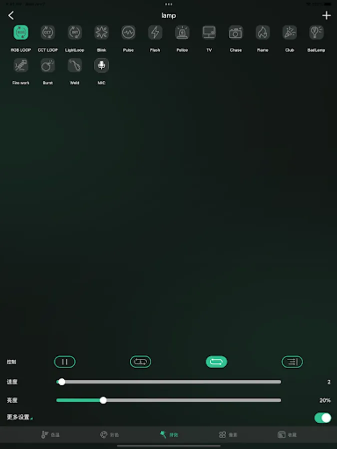 This is a mobile application that controls photography lights through Bluetooth networking. The characteristic of this application is that various lights can be grouped together and combined in an orderly manner to generate various lighting effects. Users can bookmark their favorite lighting combinations and share them with friends. These functions make the lighting layout in the live broadcast room very convenient. Lighting engineers no longer need to set lighting parameters separately for each live broadcast room. Live rooms of the same type only need to have the same camera lights arranged, and then use this application to quickly adjust the lighting parameters.