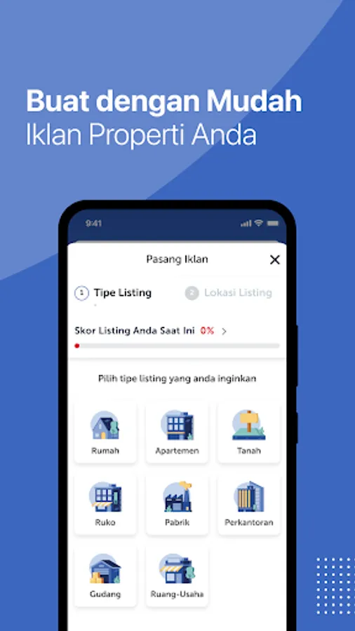 Membuat iklan properti dengan aplikasi ini adalah semudah 1-2-3, yaitu :