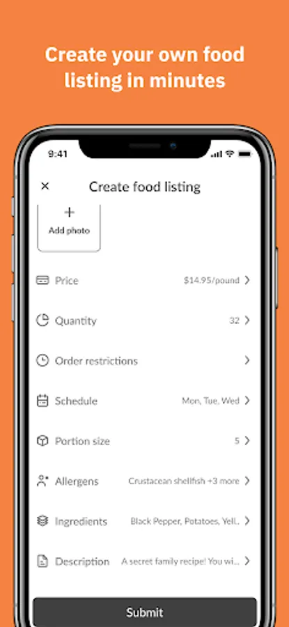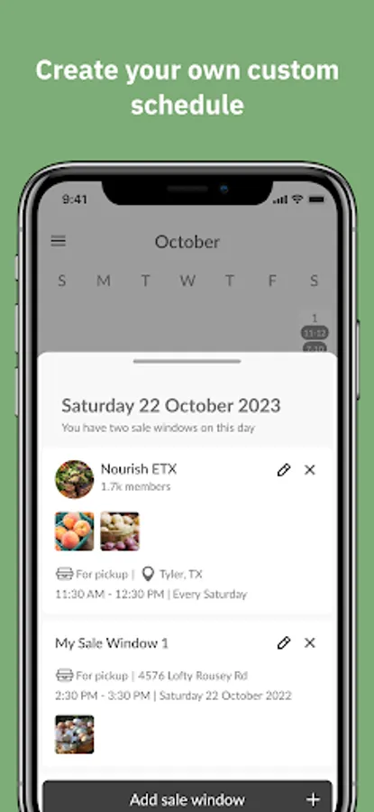 As a local food producer, you can use the app to easily set up listings for sale, manage inventory, track orders, create multiple schedules, and get paid quickly, directly to your bank account.