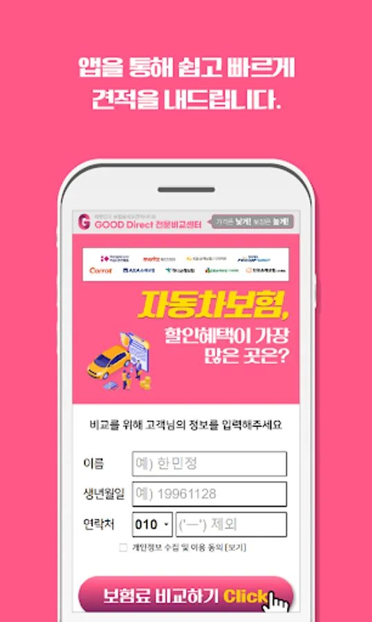 If you download the auto insurance premium comparison website app, Dongbu Direct Auto Insurance,