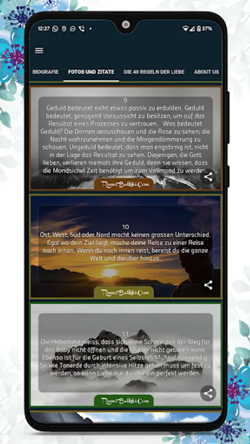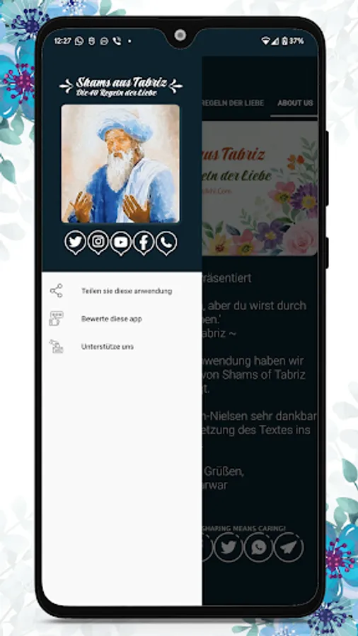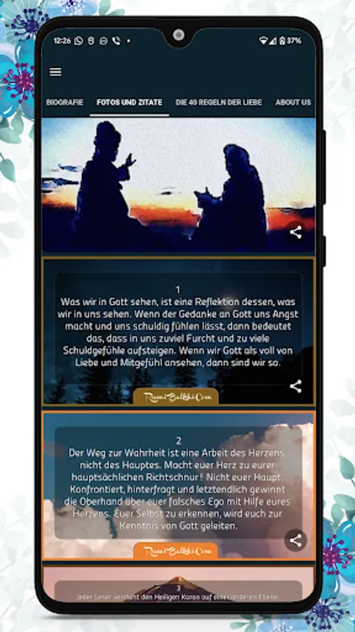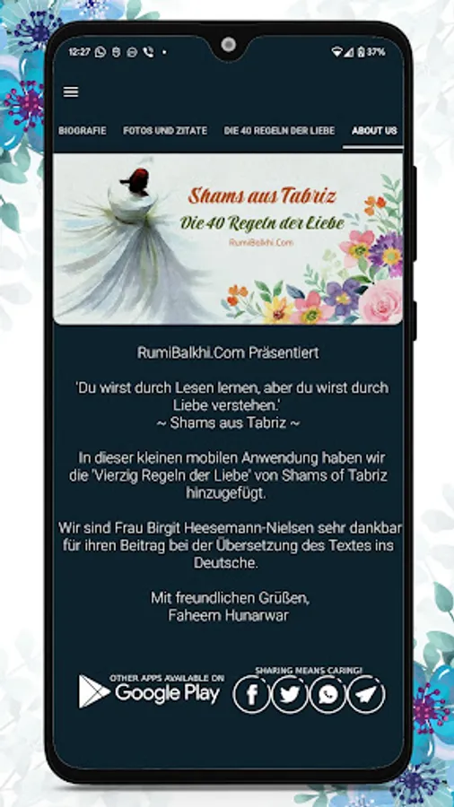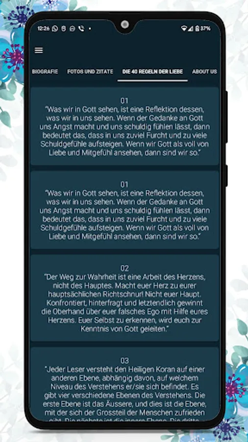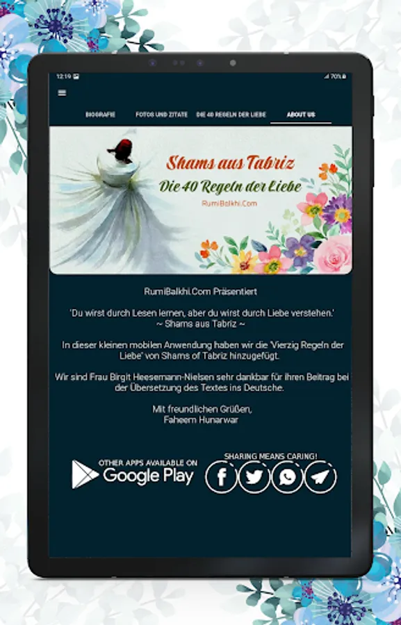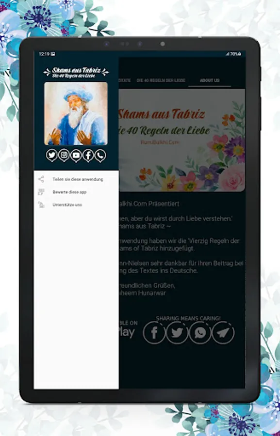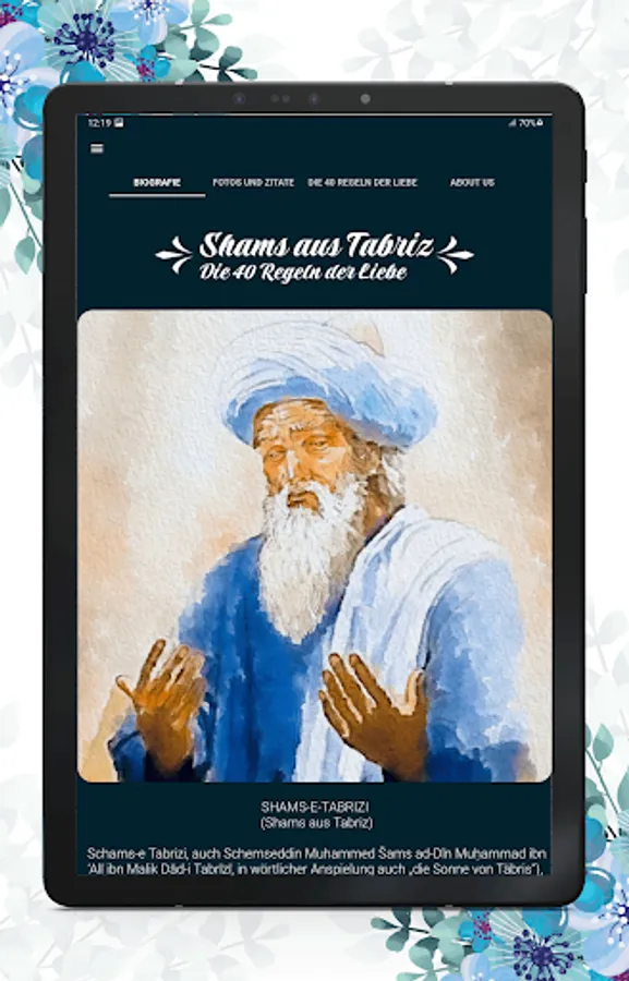 In this beautiful application we have added the "Forty Rules of Love" from Shams of Tabriz.