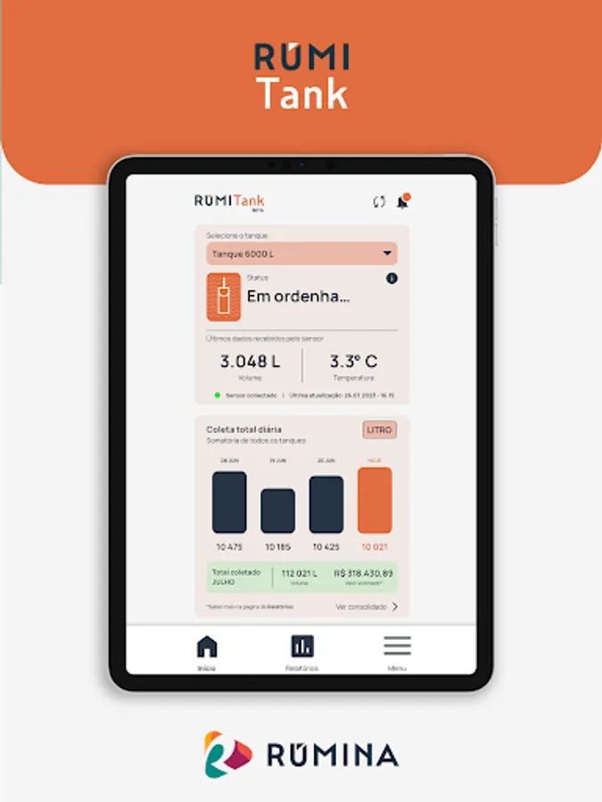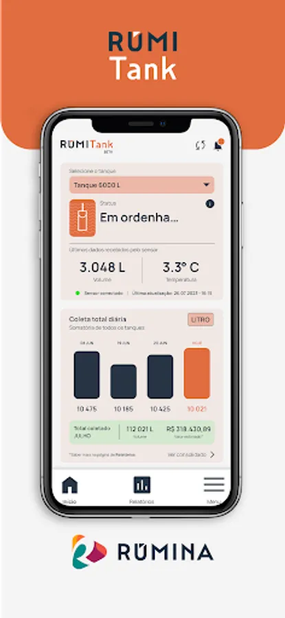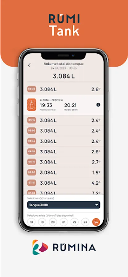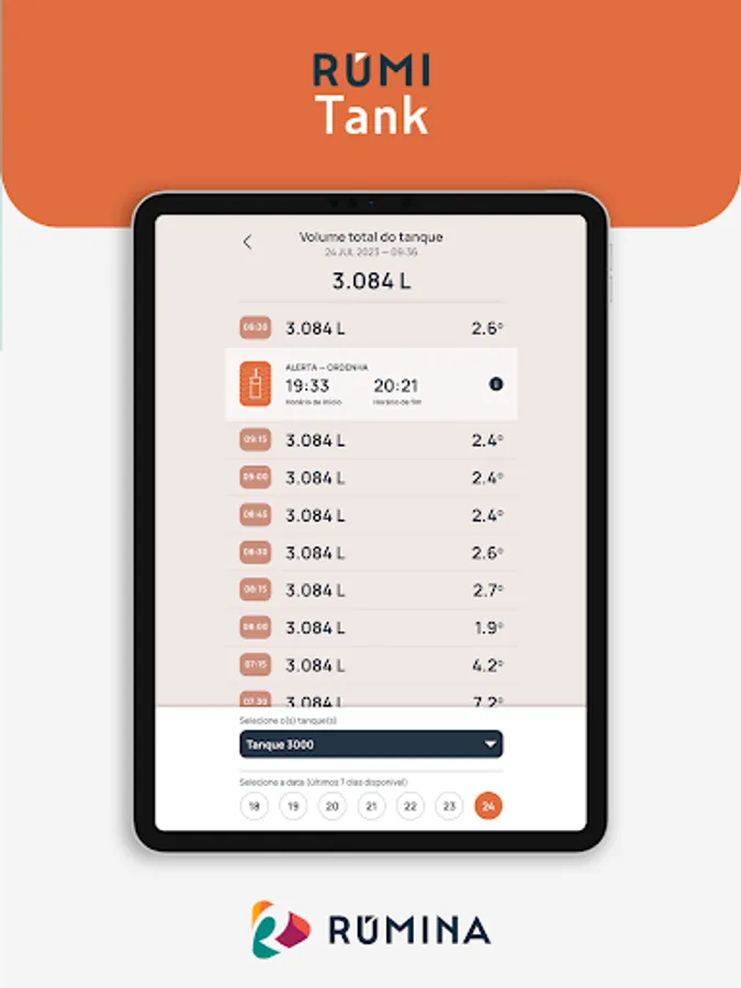 - RúmiTank allows remote monitoring - and in real time - of the tank's volume and temperature via app 24 hours a day;