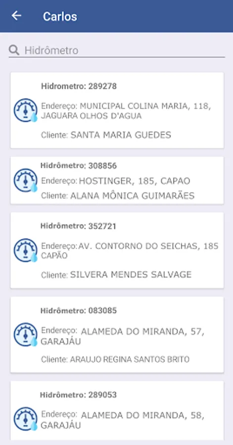 Records the reading flow of the hydrometers via Mobile; Indicates the history of consumption data; Generates and writes off Billets through Direct Integration with the User Bank; Add and remove Rates; It makes installments and reports.
